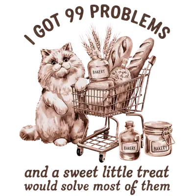 Funny Cat Bakery DTF Transfer | 99 Problems & Sweet Treats