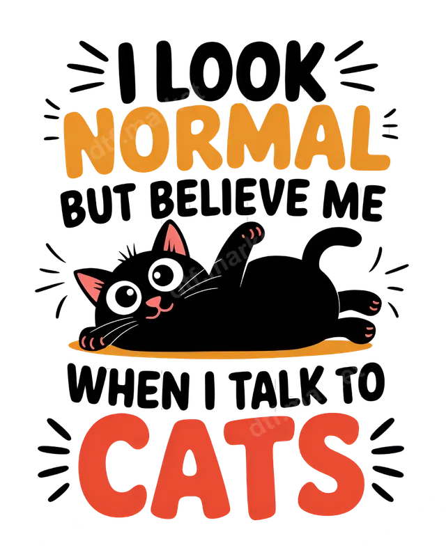 See allThis adorable DTF transfer features a playful black cat with the witty phrase, "I LOOK NORMAL BUT BELIEVE ME WHEN I TALK TO CATS." The design perfectly captures the secret life of every dedicated cat parent, blending humorous typography with a charming illustration. It’s a ready to press design that brings a smile to anyone who understands the unique bond with their feline friends, offering a cute and relatable statement piece for any garment. This funny cat heat transfer is ideal for anyone who adores their pets and isn't afraid to show their quirky side. It makes a fantastic gift for birthdays, Mother's Day, Christmas, or just because, for cat moms, cat dads, veterinarians, pet sitters, or any animal lover. Create custom t-shirts, sweatshirts, tote bags, or even aprons that will surely spark conversations and knowing nods from fellow cat enthusiasts. Applying this iron on transfer is incredibly simple, whether you use a professional heat press or a household iron. Our high-quality direct to film transfers adhere beautifully to a wide range of materials, including cotton, polyester, and cotton/poly blends. For best results, heat press at 300-325°F for 15 seconds with medium pressure, then allow to cool completely before peeling. No tedious weeding or layering is required, making customization quick and easy. Experience superior quality with our durable and vibrant apparel transfers. Crafted using professional DTF film, these designs boast vivid colors that resist cracking and fading, ensuring your garment looks great wash after wash. The strong adhesive ensures a long-lasting bond, while the transfer itself is soft to the touch, providing maximum comfort without a bulky feel. This heat press design delivers a professional finish every time.