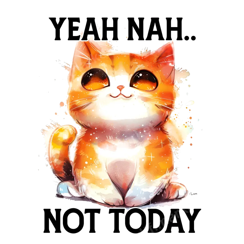 Funny Cat 'Yeah Nah Not Today' DTF Transfer | Ready to Press