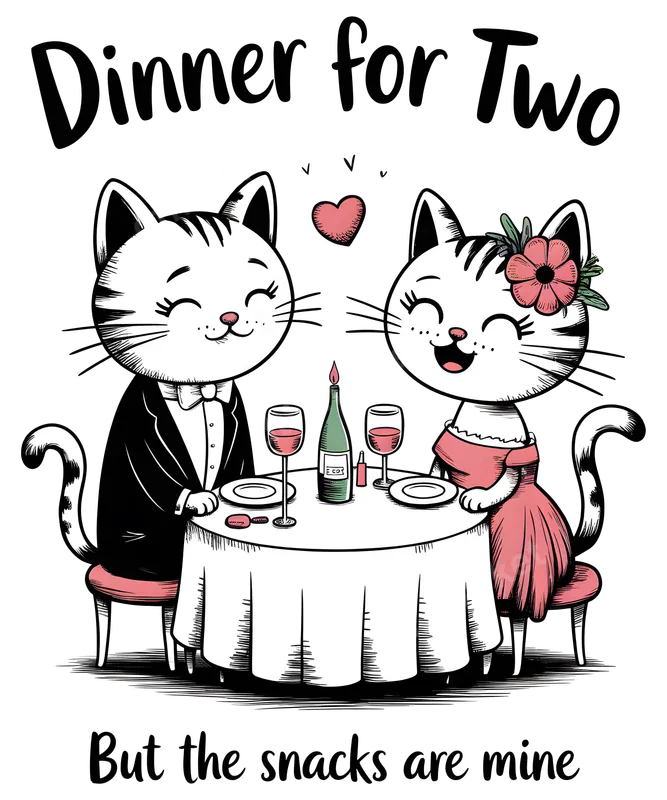 Funny Cats Dinner Date DTF Transfer - "Snacks Are Mine" Design