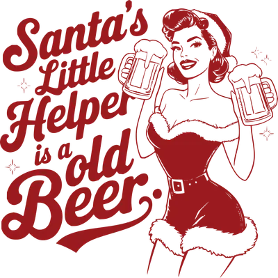 Funny Christmas Beer Pin-Up DTF Transfer - Santa's Little Helper