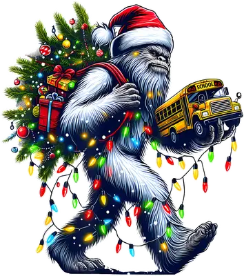 Funny Christmas Bigfoot Santa Carrying School Bus DTF Transfer