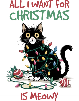 Funny Christmas Cat DTF Transfer - All I Want is Meowy