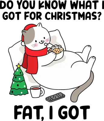 Funny Christmas Cat DTF Transfer - Holiday Eating Humor