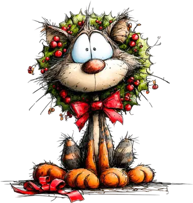 See allSpread holiday cheer with this whimsical funny Christmas cat DTF transfer, featuring a charming tabby sporting a vibrant holly wreath adorned with bright red berries and a festive red bow. The playful expression and fluffy, sketchy art style make this a truly unique and adorable design. This high-quality, ready to press direct to film transfer is perfect for bringing a smile to faces throughout the holiday season.
