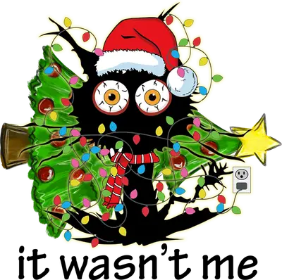Funny Christmas Cat DTF Transfer - Tangled Lights "It Wasn't Me"