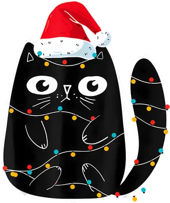 Funny Christmas Cat DTF Transfer | Tangled Lights Santa Hat