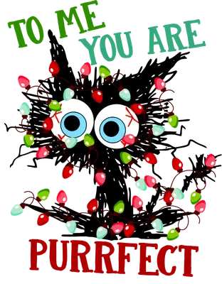 See allUnleash holiday humor with this 'To Me You Are Purrfect' DTF transfer! This vibrant design showcases a grumpy black cat hilariously tangled in colorful Christmas lights, its wide, expressive eyes conveying playful exasperation. It’s the perfect ready to press graphic to infuse feline charm and festive spirit into your wardrobe or custom creations, featuring a delightful pun. This adorable and funny iron on transfer is ideal for cat lovers, holiday enthusiasts, and pun appreciators. It's a fantastic gift for friends, family, or yourself during the Christmas season, holiday parties, or white elephant exchanges. Small t-shirt businesses and crafters seeking unique heat transfer designs will find this graphic a seasonal crowd-pleaser for memorable apparel. Applying this heat press transfer is effortless, perfect for cotton, polyester, blends, and even nylon. Achieve professional results with a heat press (300-325°F for 15 seconds at medium pressure) or a household iron. No weeding required – simply peel and press! It's ideal for custom t-shirts, cozy hoodies, festive sweatshirts, tote bags, and charming pillow covers, transforming any garment into a holiday statement. Experience superior quality with this ready to press transfer. Each direct to film transfer boasts vibrant, full-color printing, capturing every detail. Our transfers are crack-resistant, soft to the touch, and avoid the heavy, stiff feel of traditional vinyl. Printed on premium DTF film with a robust adhesive backing, expect professional, long-lasting results that withstand countless washes.