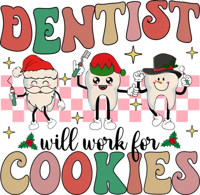 Funny Christmas Dentist Will Work For Cookies DTF Transfer