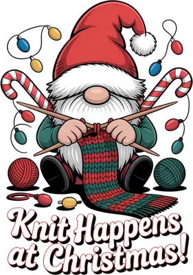 Funny Christmas Gnome Knitting DTF Transfer - Knit Happens Pun