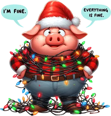 Funny Christmas Pig DTF Transfer | Tangled Lights & "I'm Fine" Design