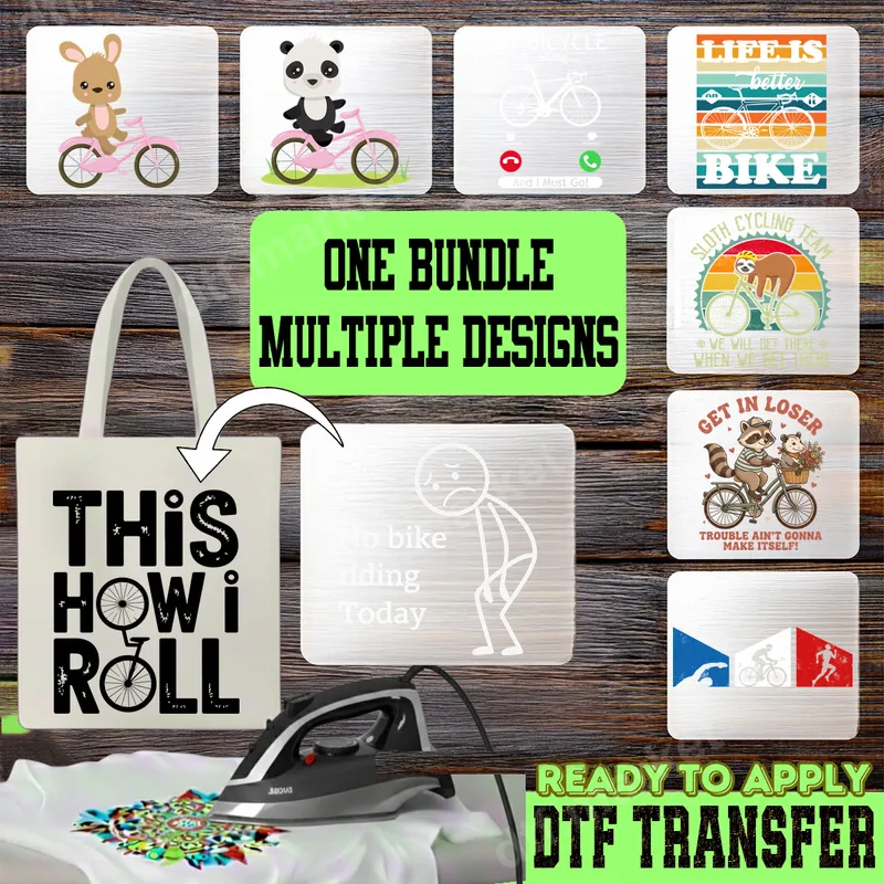 Funny & Cute Bicycle DTF Transfer Bundle | Ready to Press Designs