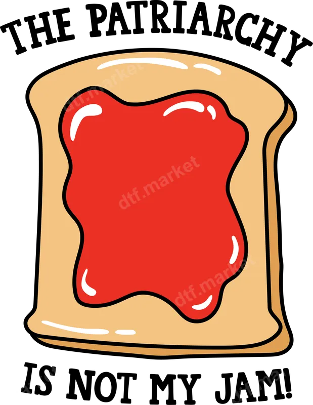 See allThis bold and witty DTF transfer proudly declares, "THE PATRIARCHY IS NOT MY JAM!" with a playful graphic of jam on toast. It's a perfect blend of humor and strong social commentary, designed for those who aren't afraid to speak their minds. This direct to film transfer is ready to press, making it easy to personalize your apparel and express your viewpoint with vibrant, lasting color. This ready to press transfer is ideal for feminists, activists, social justice advocates, and anyone with a sarcastic sense of humor. It makes a fantastic gift for friends, sisters, or colleagues who share a similar stance. Perfect for everyday wear, political rallies, International Women's Day celebrations, or simply making a statement wherever you go, this design is sure to spark conversations and smiles. Applying this heat press design is straightforward. Our high-quality DTF transfers can be applied to a wide range of materials, including cotton, polyester, and their blends. Simply use a heat press at 300-325°F for 15 seconds with medium, even pressure. Unlike traditional vinyl transfer options, there’s no tedious weeding required. For best results, allow the transfer to cool completely before peeling the film. Experience professional-grade results with our premium DTF film. Each apparel transfer boasts vibrant colors that pop, exceptional detail, and a soft-to-the-touch finish that won't crack or peel. Our heat press ready transfers feature strong adhesive, ensuring your custom design withstands numerous washes, allowing your message to stay clear and impactful for years to come.
