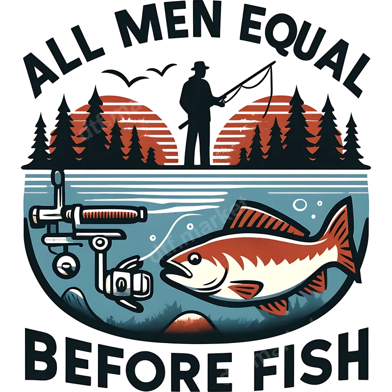 Funny Fishing DTF Transfer: All Men Equal Before Fish Design