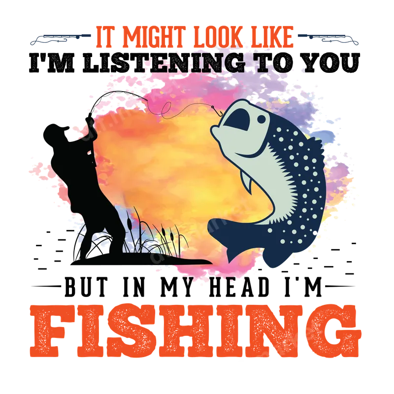 See allDive into the world of angling humor with this vibrant "It Might Look Like I'm Listening To You But In My Head I'm Fishing" DTF transfer. Featuring a silhouette of a fisherman reeling in a jumping fish against a colorful, watercolor-style background, this design perfectly captures the daydreaming spirit of every fishing enthusiast. It's a high-quality, ready to press transfer that's sure to bring a smile. This unique design is ideal for fishing dads, grandpas, husbands, or any friend who’d rather be on the water. It makes a fantastic gift for Father's Day, birthdays, fishing trip souvenirs, or just a fun way to express a passion for the sport. Transform any plain garment into a personalized statement piece with this awesome t-shirt transfer. Applying this DTF transfer is incredibly simple. It's a heat press ready design that works flawlessly on a wide range of fabrics, including cotton, polyester, and various blends. For best results, use a heat press at 300-325°F for 15 seconds with medium pressure. It can also be applied with a household iron. Best of all, there's no weeding required, making it a quick and easy iron on decal for anyone. Experience professional-grade results with our premium DTF film. This durable heat press design ensures vibrant, true-to-color prints that are soft to the touch, stretchable, and resistant to cracking or peeling after washing. Our apparel transfers are made to last, providing a high-quality finish for all your custom creations.
