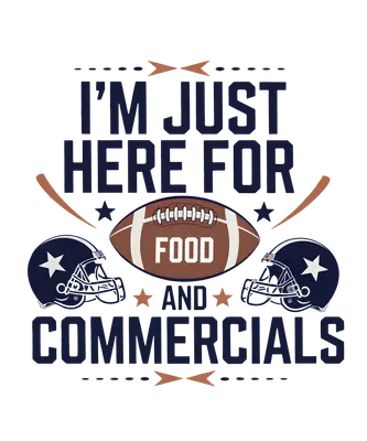 See allShow off your true priorities during game day with this hilarious 'I'm Just Here For Food And Commercials' DTF transfer. Featuring bold, dark blue typography accented with brown football helmets, a classic football (labeled 'FOOD'), and playful stars, this design perfectly captures the spirit of those who enjoy the social side of sports events more than the game itself. It’s a ready to press design that’s sure to get a chuckle. This funny heat transfer design is perfect for anyone who attends Super Bowl parties, game day gatherings, or casual watch parties for the snacks and company. Ideal for gift-givers looking for a unique gag gift for a sports-averse friend or family member, or for small apparel businesses and Etsy sellers wanting to add humor to their collection. This iron on transfer is a fantastic way to create custom apparel for casual outings or themed events. Applying this heat press transfer is a breeze on cotton, polyester, cotton-poly blends, and even nylon fabrics. Simply use a heat press at 300-325°F for 15 seconds with medium pressure, or apply with a household iron. No weeding or complicated steps – just peel and press! It’s perfect for custom t-shirts, hoodies, sweatshirts, aprons, tote bags, and even pillow covers. For best results and lasting durability, wash garments inside out and tumble dry low. Our ready to press transfer ensures vibrant, full-color printing with exceptional detail, making every design pop. This direct to film transfer is crack-resistant, soft to the touch, and avoids the heavy, stiff feel often associated with vinyl. Each apparel transfer is printed on premium DTF film with a robust adhesive backing, guaranteeing professional-quality results for all your garment customization projects.