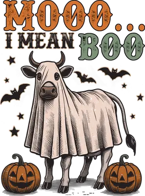 Funny Ghost Cow Halloween DTF Transfer - "Moooo I Mean Booo"