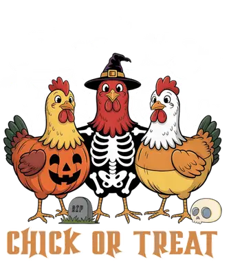 Funny Halloween Chickens DTF Transfer | Chick or Treat Skeleton Pumpkin