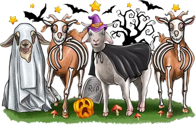 Funny Halloween Goats DTF Transfer - Ghost Skeleton Witch