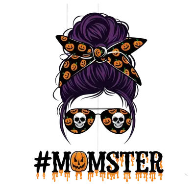Funny Halloween Momster Messy Bun DTF Transfer Design