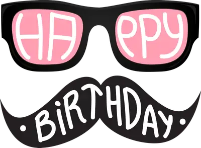 Funny Happy Birthday Sunglasses Mustache DTF Transfer