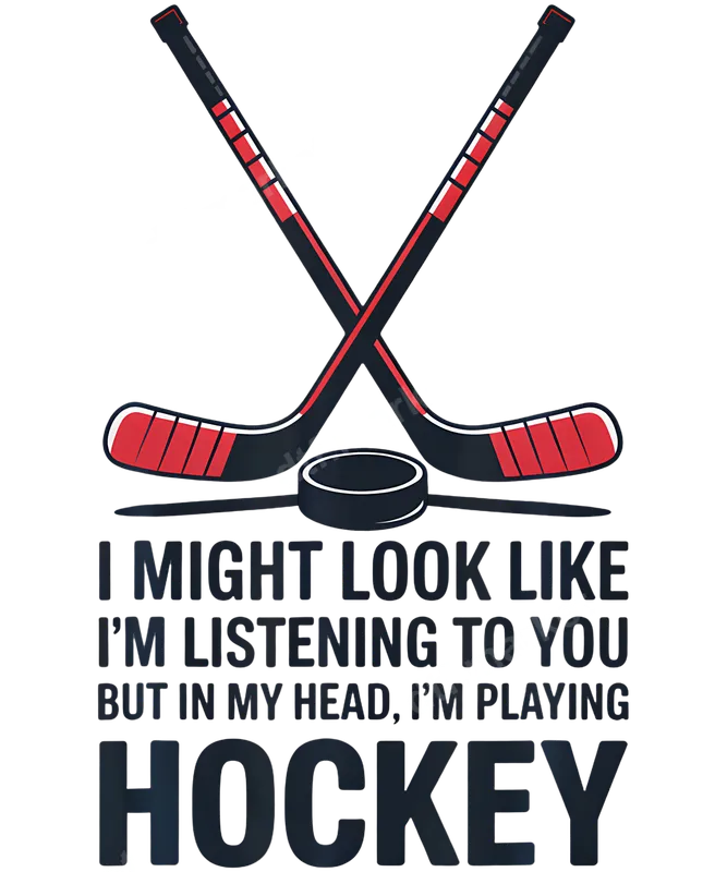 See allThis hilarious DTF transfer features two crossed hockey sticks, a puck, and the relatable phrase, "I might look like I'm listening to you but in my head, I'm playing Hockey." It's the perfect ready to press design for anyone whose mind is always on the rink. This fun apparel transfer captures the spirit of the game with its bold text and classic hockey imagery, making it an instant favorite for players and fans alike. This funny iron on decal is ideal for hockey players, coaches, parents, and devoted fans. It makes an excellent gift for birthdays, holidays, team events, or simply to show off your passion for the sport. Outfit your entire team or fan club with custom shirts, or create unique presents for the hockey-obsessed person in your life. It's also great for casual wear, game day attire, or adding a touch of humor to your everyday wardrobe. Our direct to film transfer is designed for easy application on a wide range of fabrics, including cotton, polyester, and cotton/poly blends. For best results, use a heat press at 300-325°F for 15 seconds with medium pressure. It can also be applied with a household iron, though a heat press provides a more professional finish. Forget about the hassle of weeding vinyl transfer designs; our ready to press transfers are simple to use. Experience professional quality with our vibrant and durable DTF transfer. These heat press designs are engineered to be crack-resistant, peel-proof, and offer a soft, smooth feel on your garment. Printed on premium DTF film with strong adhesive properties, each iron on transfer ensures long-lasting wear and exceptional color retention. Elevate your apparel with a design that looks great wash after wash.