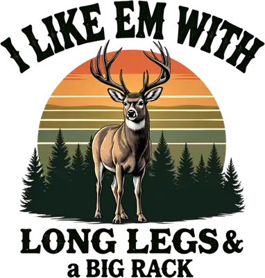 Embrace the hunting humor with this unique DTF transfer featuring a majestic buck with impressive antlers, set against a stylish retro sunset and towering pine trees. The bold text, 'I LIKE EM WITH LONG LEGS & a BIG RACK,' delivers a clever double entendre that's sure to get a laugh. This ready to press design perfectly blends outdoor aesthetics with a witty, sarcastic edge, making it an instant conversation starter for any apparel. This design is perfect for hunters, outdoors enthusiasts, and anyone who appreciates a sarcastic joke. It's ideal for custom shirts for hunting trips, camping weekends, or everyday wear. It also makes an excellent gift for dads, husbands, or friends who enjoy both the wilderness and a bit of cheeky humor. Small t-shirt businesses and Etsy sellers looking for popular, funny heat transfer designs will find this an irresistible iron on transfer for their inventory. Applying this heat press transfer is a breeze, compatible with a wide range of materials including cotton, polyester, blends, and even nylon. Achieve professional results with a heat press (300-325°F for 15 seconds, medium pressure) or a household iron. Forget tedious weeding; simply peel and press! It's perfect for custom t-shirts, durable hoodies, sweatshirts, practical tote bags, and personalized aprons. For best longevity, wash garments inside out and tumble dry low. Our ready to press transfer ensures vibrant, full-color printing with exceptional detail, bringing the buck and sunset to life on any garment. The high-quality print is crack-resistant and remarkably soft to the touch, avoiding the heavy, stiff feel of traditional vinyl. Each direct to film transfer is meticulously produced on premium DTF film, featuring a strong adhesive backing for easy application and professional, long-lasting results every time. Elevate your apparel with dtf.market’s superior quality.