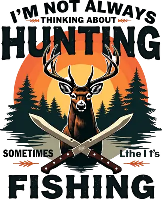 Dive into the great outdoors with this witty 'I'm Not Always Thinking About Hunting... Sometimes It's Fishing' DTF transfer. This vibrant design features a majestic buck with impressive antlers, silhouetted against a stunning sunset backdrop of pine trees. Below, two crossed hunting knives add a rugged touch. It’s a perfect visual for anyone whose heart belongs to the wilderness, and it comes as a ready to press transfer, making customization effortless. This outdoor-themed iron on transfer is perfect for hunters, fishermen, nature lovers, and anyone who appreciates a good laugh about their favorite pastimes. Ideal for Father's Day gifts, birthdays for outdoorsmen, or creating unique apparel for hunting trips, fishing excursions, or camping adventures. Small t-shirt businesses and crafters seeking popular heat transfer designs will find this a fantastic seller, especially for rustic collections. Applying this heat press transfer is simple and versatile, working beautifully on cotton, polyester, blends, and even nylon. Achieve professional results with a heat press (300-325°F for 15 seconds, medium pressure) or a household iron. No weeding required – just peel and press! It’s perfect for custom t-shirts, hoodies, sweatshirts, rugged tote bags, hats, and denim jackets. For best results, wash inside out and tumble dry low. Experience superior quality with this ready to press transfer, featuring vibrant, full-color printing and exceptional fine detail. The design is engineered to be crack-resistant and soft to the touch, avoiding the stiff, heavy feel of vinyl. Each direct to film transfer is meticulously printed on premium DTF film, ensuring a strong adhesive backing and professional, long-lasting results for all your apparel projects.