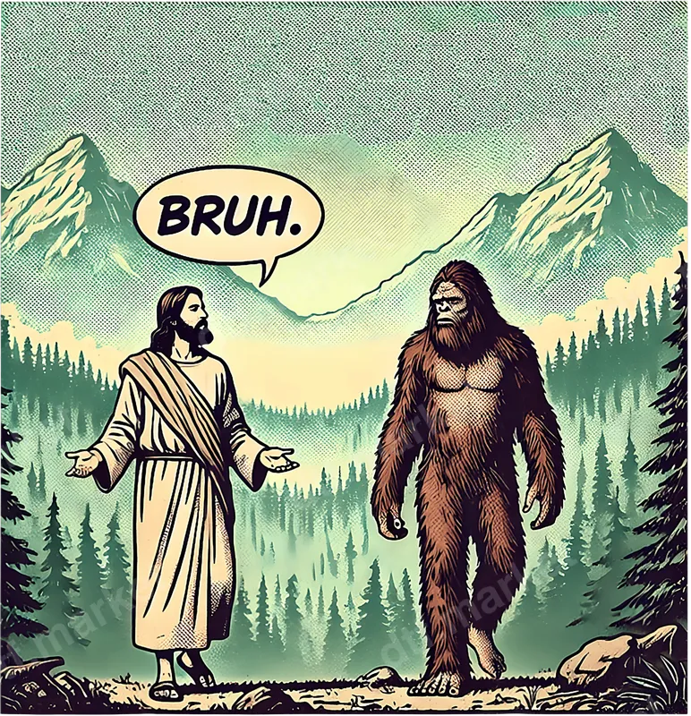 Funny Jesus & Bigfoot 'Bruh.' DTF Transfer | Ready to Press