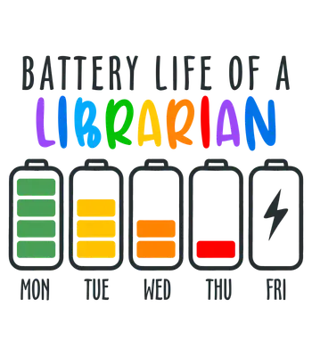 Funny Librarian Battery Life DTF Transfer | Ready to Press Work Week Design