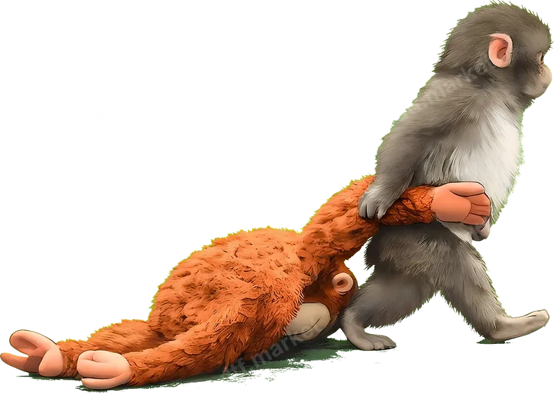 Funny Monkey Dragging Friend DTF Transfer - Playful Animal Design