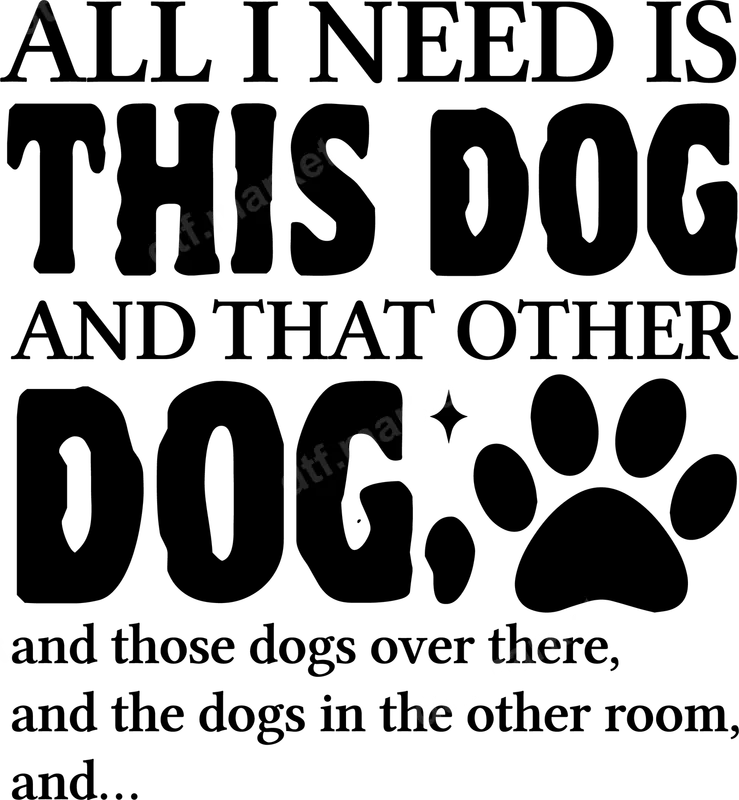 See allShowcase your absolute devotion to all the furry friends in your life with this hilarious 'All I Need Is This Dog And That Other Dog...' DTF transfer. This playful design, featuring bold typography and a cute paw print, perfectly captures the joy (and slight obsession) of a multi-dog household. It’s a ready to press transfer that brings a smile, celebrating that unique bond with every dog, everywhere. This unique direct to film transfer is designed for ultimate dog enthusiasts, dedicated pet parents, and anyone who understands the delightful chaos of living with multiple canines. It makes an ideal gift for birthdays, Mother's Day, Father's Day, or simply as a special treat for yourself. Perfect for casual wear, dog park visits, or showing off your pack pride at pet-friendly events, this iron on transfer is a fantastic way to personalize your apparel. Applying your new heat press design is incredibly simple! This high-quality heat transfer works beautifully on a wide range of fabrics, including cotton, polyester, and various blends. For best results, use a heat press at 300-325°F for 15 seconds with medium pressure. It can also be applied with a household iron with firm, even pressure. Unlike vinyl, there's no weeding required, making custom apparel creation fast and effortless. Our premium DTF transfers boast vibrant colors, exceptional durability, and a super soft hand feel once applied. Crafted using professional-grade DTF film and strong adhesive, your design will be crack-resistant and withstand countless washes, ensuring your love for dogs shines brightly for years to come. Enjoy a long-lasting, professional-looking shirt design without the hassle.