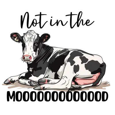 Funny Not in the MOOD Cow DTF Transfer | Sarcastic Farm Animal Design