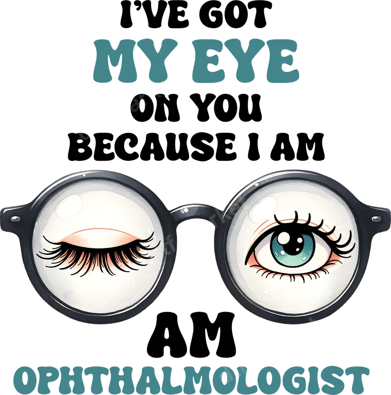 See allThis clever DTF transfer features a witty design perfect for any eye care professional. The graphic showcases a pair of stylish glasses, with one lens revealing a beautifully detailed open eye and the other a closed eye with elegant lashes. Above and below, the text playfully states, "I'VE GOT MY EYE ON YOU BECAUSE I AM AM OPHTHALMOLOGIST." This high-quality, ready to press transfer brings a touch of humor and personality to any garment. This unique heat transfer is ideal for ophthalmologists, optometrists, eye care technicians, and anyone in the vision health field. It makes a fantastic gift for birthdays, work anniversaries, graduation for medical students, or just a fun way to express professional pride. Perfect for casual Fridays at the clinic, medical conferences, or everyday wear to bring a smile to patients' faces. Applying this iron on transfer is a breeze, compatible with a wide range of materials including 100% cotton, polyester, and various blends. For best results, use a heat press at 300-325°F for 15 seconds with medium pressure. It can also be applied with a household iron, following simple instructions. Enjoy the convenience of a ready-to-press design with no tedious weeding required. Our DTF transfer ensures vibrant colors, exceptional durability, and a soft, smooth feel on your chosen fabric. Crafted with professional-grade DTF film and strong adhesive, this apparel transfer resists cracking and peeling, maintaining its quality wash after wash. Elevate your wardrobe or create custom gifts with a lasting, professional finish that truly stands out.