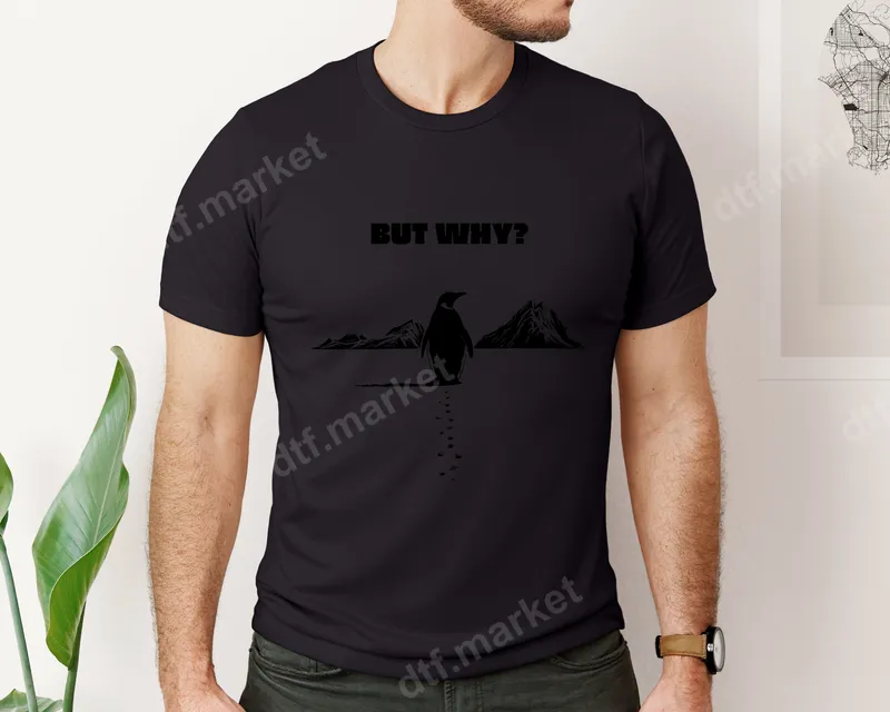 Funny Penguin 'But Why?' DTF Transfer | Ready to Press Design