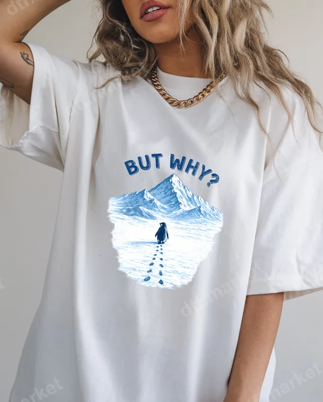 Funny Penguin But Why DTF Transfer | Snow Mountain Ready to Press Design