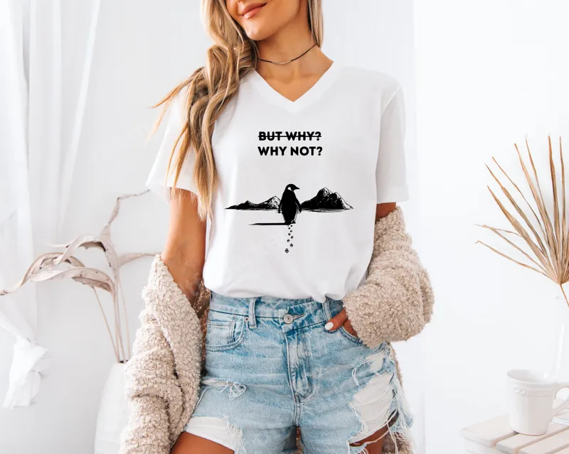 Funny Penguin "But Why? Why Not?" DTF Heat Transfer Design