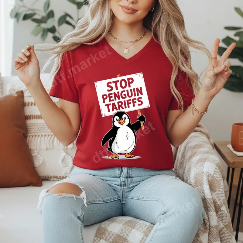 See allUnleash some lighthearted protest with our adorable yet absurd 'Stop Penguin Tariffs' DTF transfer! This vibrant design features a charming cartoon penguin, passionately holding a sign that declares its stance against imaginary tariffs. It's a witty, ready to press graphic perfect for anyone who loves a good pun and a unique, funny animal design. This humorous direct to film transfer is an ideal choice for meme lovers, animal enthusiasts, or anyone with a quirky sense of humor looking to add some personality to their wardrobe. It makes a fantastic gift for friends, family, or colleagues who appreciate a good laugh, perfect for birthdays, casual gatherings, or just to brighten someone's day. Applying this heat press design is a breeze. Our high-quality DTF transfers adhere seamlessly to cotton, polyester, and most fabric blends. Simply use a heat press at 300-325°F for 15 seconds with medium pressure, or apply with a household iron. Best of all, there's no weeding required, making customization quick and effortless, just like a professional iron on transfer. Crafted from premium DTF film, this apparel transfer boasts vivid colors and exceptional durability. The design is crack-resistant, washes well, and maintains a soft, flexible feel on your garment. You'll enjoy a professional finish that stands the test of time, ensuring your funny penguin continues to make a statement.