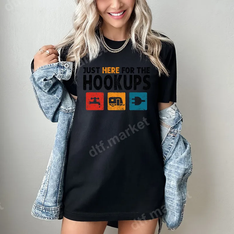 See allThis hilarious DTF transfer features the playful phrase 'Just Here for the Hookups' in a distressed, bold font, accompanied by retro-style icons for water, an RV, and electricity. It’s a perfect ready to press design that winks at the double meaning of "hookups" for all your camping and travel adventures. This vibrant, high-quality heat press ready transfer is designed to make a statement wherever you go, ensuring a professional finish with minimal effort. Ideal for RV enthusiasts, campers, glampers, and anyone who appreciates a good laugh with a touch of adult humor, this heat press design makes a fantastic gift. Perfect for road trips, campground gatherings, summer vacations, or as a fun addition to your everyday wardrobe, it's a conversation starter for men and women alike. Celebrate your love for the open road and all its amenities – and perhaps a little more – with this witty apparel transfer. Our premium DTF transfers are incredibly versatile, adhering beautifully to a wide range of materials including cotton, polyester, and various blends. Applying your custom transfer is simple: just use a heat press at 300-325°F for 15 seconds with medium pressure. For those without a professional press, a household iron can also be used. Best of all, there’s no tedious weeding required, making your crafting process quick and enjoyable. Experience professional-grade results with our durable, vibrant direct to film transfers. Each design boasts exceptional color retention, is crack-resistant, and incredibly soft to the touch, ensuring your apparel looks great wash after wash. Crafted on high-quality DTF film with a strong, long-lasting adhesive, these iron on decals provide a superior finish that stands out from typical vinyl transfers.