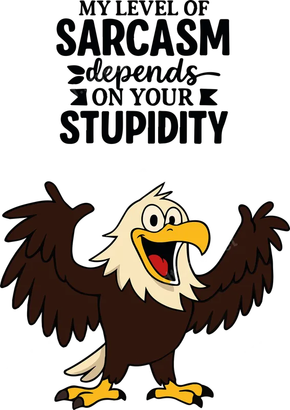 See allThis vibrant DTF transfer features a hilariously relatable quote: "MY LEVEL OF SARCASM depends ON YOUR STUPIDITY" presented in a dynamic mix of bold and script fonts. Below the witty text, a cheerful, cartoon bald eagle with outstretched wings adds a playful touch, emphasizing the design's sarcastic and humorous vibe. It's a perfect ready to press transfer for anyone looking to add a bold statement to their apparel. This design is ideal for individuals with a sharp wit and a love for sarcastic humor. It makes an excellent gift for friends, family, or colleagues who appreciate clever one-liners and isn't afraid to show off their personality. Perfect for casual wear, social gatherings, or simply making a statement at work or school, this heat transfer brings a guaranteed chuckle. Our direct to film transfer is incredibly versatile, applying flawlessly to a wide range of materials including cotton, polyester, and various blends. For best results, use a heat press at 300-325°F for 15 seconds with medium pressure. It's also suitable for application with a quality household iron. Enjoy the convenience of a ready to press design with absolutely no weeding required, making custom apparel creation simple and fast. Experience professional-grade quality with every iron on transfer from dtf.market. Our designs boast vibrant colors that truly pop, are crack-resistant, and feel incredibly soft to the touch, ensuring maximum comfort and durability. Made with high-quality DTF film and strong adhesive, these shirt designs are built to last, maintaining their pristine look wash after wash.