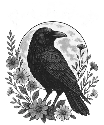 Funny Sarcastic Crow F-CAW-F Moon & Flowers DTF Transfer