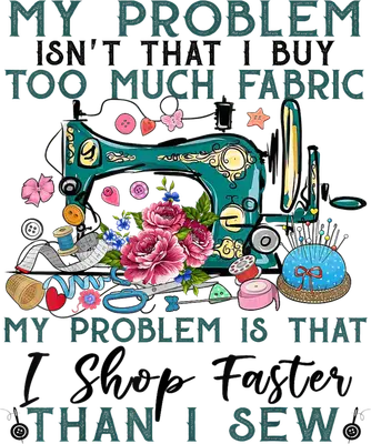 See allThis delightful "My Problem Is I Shop Faster Than I Sew" DTF transfer perfectly captures the universal truth for any passionate crafter. Featuring a beautifully detailed vintage teal sewing machine adorned with vibrant pink roses and various sewing notions like spools, buttons, and scissors, this design is ready to press onto your favorite apparel. Its charming aesthetic and relatable humor make it an instant favorite for anyone who loves textiles and creating. This design is an ideal "iron on transfer" for sewing enthusiasts, quilters, and anyone whose fabric stash outgrows their crafting time. Perfect for personalizing gifts for Mother's Day, birthdays, or just to celebrate your crafty friends. Small t-shirt businesses and Etsy sellers specializing in hobby-themed apparel will find this "heat transfer design" a fantastic addition to their inventory, appealing directly to the booming DIY community. Applying this "heat press transfer" is quick and easy. It adheres flawlessly to a wide range of materials including cotton, polyester, cotton-poly blends, and even nylon. For best results, use a heat press at 300-325°F for 15 seconds with medium pressure, or apply with a household iron. There's no weeding or complex steps – just peel and press! It’s perfect for custom t-shirts, cozy hoodies, practical tote bags, charming aprons, and even personalized pillow covers for your craft space. Wash garments inside out and tumble dry low to ensure lasting vibrancy and durability. Experience superior quality with this "ready to press transfer." It boasts vibrant, full-color printing that captures every fine detail of the sewing machine and floral elements. The finish is crack-resistant, soft to the touch, and avoids the heavy, stiff feel often associated with traditional vinyl transfers. Each direct to film transfer is meticulously printed on premium DTF film with a strong adhesive backing, ensuring professional, durable results that stand up to countless washes and wears.
