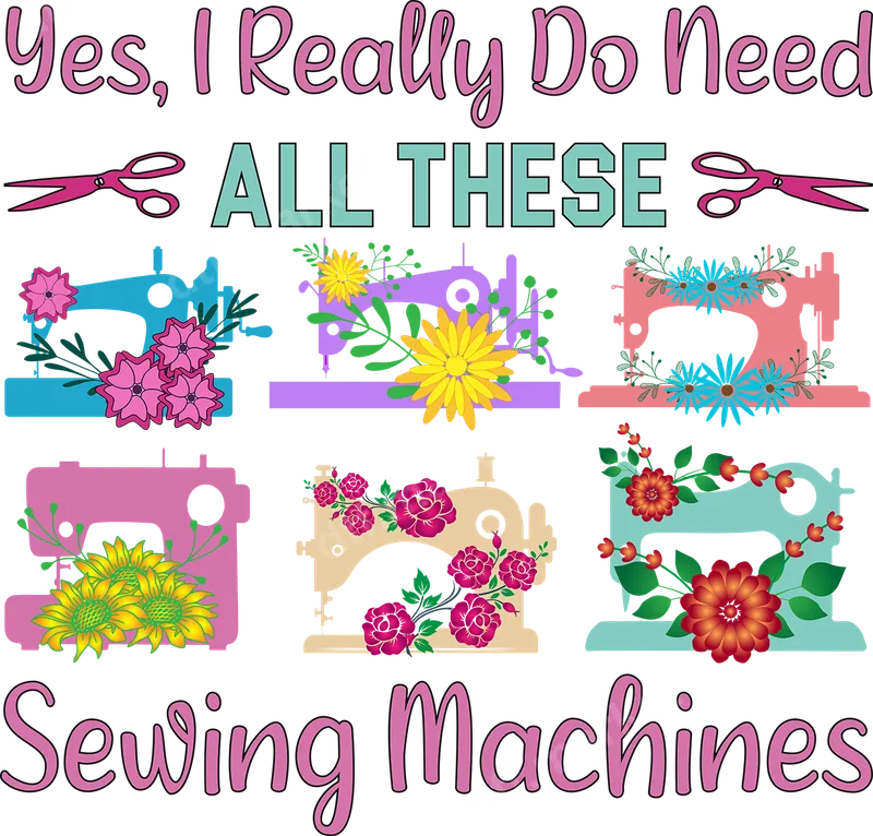 See allEmbrace your crafting obsession with this vibrant 'Yes, I Really Do Need ALL THESE Sewing Machines' DTF transfer. This playful design features six unique sewing machines, each adorned with colorful flowers like sunflowers and roses. Pink sewing scissors flank the witty text, adding charm. It's a humorous and relatable statement for any crafter, offering floral beauty and wit to any garment or accessory as a ready to press transfer. This unique heat press design is perfect for dedicated sewists, passionate quilters, and any crafting enthusiast. It makes an ideal gift for Mother's Day, birthdays, or just because, celebrating this beloved hobby. Whether attending a craft fair or a sewing workshop, this iron on transfer lets you proudly display your passion. It's also great for creating matching shirts for a sewing club or craft retreat. Our premium DTF transfers are incredibly versatile, designed for easy application on cotton, polyester, and blends. Achieve professional results with a heat press at 300-325°F for 15 seconds, medium pressure. For household iron users, ensure even, firm pressure. Forget weeding vinyl transfer designs; our direct to film transfers simplify customization, letting you create stunning apparel quickly and efficiently. Experience superior quality with our durable and vibrant apparel transfer designs. Each DTF transfer boasts brilliant colors that pop, exceptional wash durability, and a soft, flexible feel that won't crack or peel. We use professional-grade DTF film and strong adhesive powder to ensure your designs look fantastic and last. Elevate your wardrobe and showcase your love for sewing with a transfer that combines beauty, humor, and lasting quality.