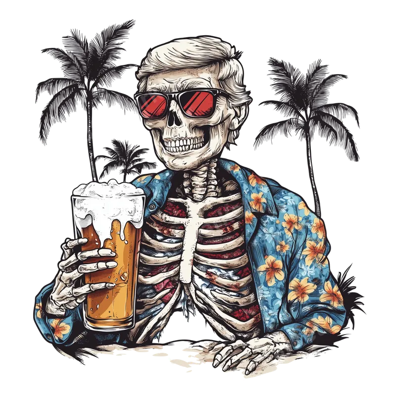 Funny Skeleton Hawaiian Shirt Beer DTF Transfer - Ready to Press