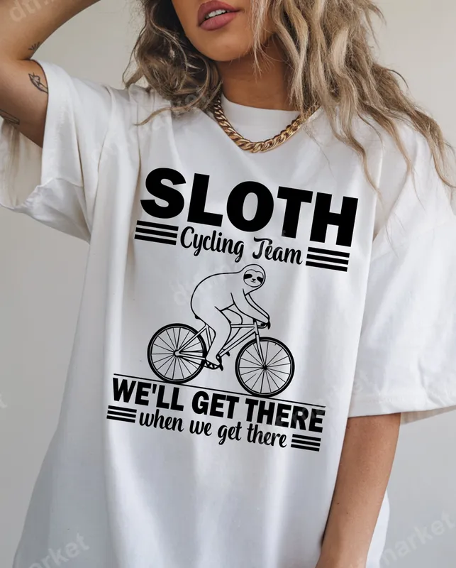 See allThis hilarious DTF transfer features a charmingly slow sloth, proudly riding a bicycle, accompanied by the witty text "SLOTH Cycling Team" and "WE'LL GET THERE when we get there." It perfectly captures a laid-back, humorous attitude towards life's pace, making it an ideal ready to press design for anyone who appreciates a good laugh and a relaxed approach. This funny iron on transfer is perfect for cyclists with a sense of humor, sloth lovers, or anyone who enjoys sarcastic and relatable apparel. It makes an excellent gift for birthdays, Father's Day, Mother's Day, or just because. Ideal for casual wear, group events, family vacations, or adding a unique touch to your wardrobe, this design is sure to spark smiles and conversations. Our high-quality heat press transfers are incredibly easy to apply to almost any fabric, including cotton, polyester, and their blends. For best results, use a heat press at 300-325°F for 15 seconds with medium pressure. For home users, a household iron can also be used with firm, even pressure. Enjoy the simplicity of no weeding required—just press and peel for a perfect shirt design every time. Crafted from premium DTF film, this direct to film transfer boasts vibrant, crisp details and exceptional durability. Our apparel transfers are designed to be crack-resistant, fade-resistant, and incredibly soft to the touch, ensuring your custom transfer looks fantastic wash after wash. Experience professional-grade results with strong adhesive that bonds securely to your chosen garment.
