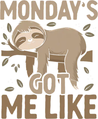 Funny Sloth Monday's Got Me Like DTF Transfer | Lazy Sloth Heat Press Design