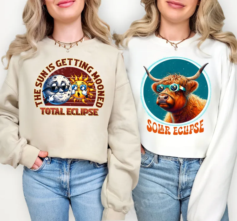 See allCelebrate the total eclipse with a hilarious twist! This unique DTF transfer features a cool moon character 'mooning' a surprised sun, playfully captioned 'THE SUN IS GETTING MOONED - TOTAL ECLIPSE'. The vibrant retro-cartoon style makes this design a standout, perfect for adding humor to any garment. It's a premium, ready to press transfer that brings instant personality. This funny heat press transfer is ideal for anyone looking to commemorate a solar eclipse event with a smile. It's perfect for viewing parties, science enthusiasts, astronomy clubs, or as a witty gift for friends and family who appreciate clever puns. Create matching t-shirts, unique hoodies, or fun tote bags that will surely spark conversations and laughter. Applying this high-quality iron on transfer is a breeze, whether you're a seasoned crafter or a beginner. Our heat press ready design works beautifully on a wide range of materials, including cotton, polyester, and blends. For best results, use a heat press at 300-325°F for 15 seconds with medium pressure. You can also achieve great results with a household iron. No weeding required, making customization quick and simple. Experience professional-grade results with our durable DTF transfer. This t-shirt transfer boasts vibrant colors and sharp details that won't fade, crack, or peel, even after multiple washes. The print is soft to the touch, ensuring maximum comfort. Crafted with professional DTF film and strong adhesive, your customized items will look fantastic and last, making them cherished pieces in any wardrobe.