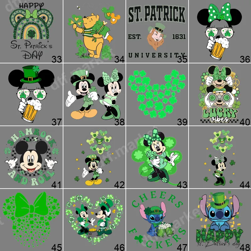 See allGet ready to shamrock and roll with our hilarious Stitch 'Cheers F*ckers' DTF transfer! This vibrant design features everyone's favorite mischievous alien, Stitch, decked out in a festive leprechaun hat and holding two overflowing steins of beer, all surrounded by playful shamrocks. The bold green text "CHEERS F*CKERS" adds an undeniably funny and edgy twist, making this the perfect ready to press transfer for your St. Patrick's Day celebrations. It’s an instant conversation starter and a fantastic way to showcase your holiday spirit with a dose of humor. This unique heat press design is ideal for anyone who loves Stitch, enjoys a good laugh, and wants to stand out at their St. Patrick's Day party or pub crawl. It makes an excellent gift for friends with a wicked sense of humor or a fantastic addition to your own festive wardrobe. Perfect for casual wear, themed events, or just bringing a smile to someone's face, this apparel transfer is sure to be a hit among adults looking for a fun and cheeky St. Patrick's Day statement. Applying this high-quality iron on decal is a breeze! Our DTF transfers work beautifully on a wide range of materials, including 100% cotton, 100% polyester, and various fabric blends. For best results, simply use a heat press at 300-325°F for 15 seconds with medium pressure. It can also be applied with a household iron (follow specific instructions for best results). There's no weeding required, saving you time and effort so you can enjoy your custom creation sooner. Experience professional-grade results with our premium DTF film. Each heat transfer ensures crisp details, vivid colors that pop, and superior wash durability that resists cracking and peeling. The soft-touch finish means your garment remains comfortable, making it feel like part of the fabric itself. Elevate your apparel game with a professional and long-lasting custom transfer that will keep the good times rolling.
