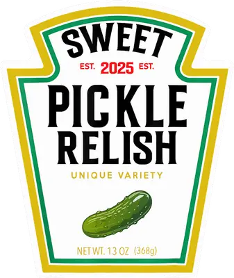 Funny Sweet Pickle Relish DTF Transfer - Parody Food Label Design