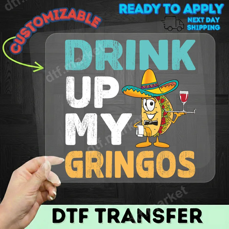 Funny Taco Drink Up My Gringos DTF Transfer | Cinco de Mayo Humor